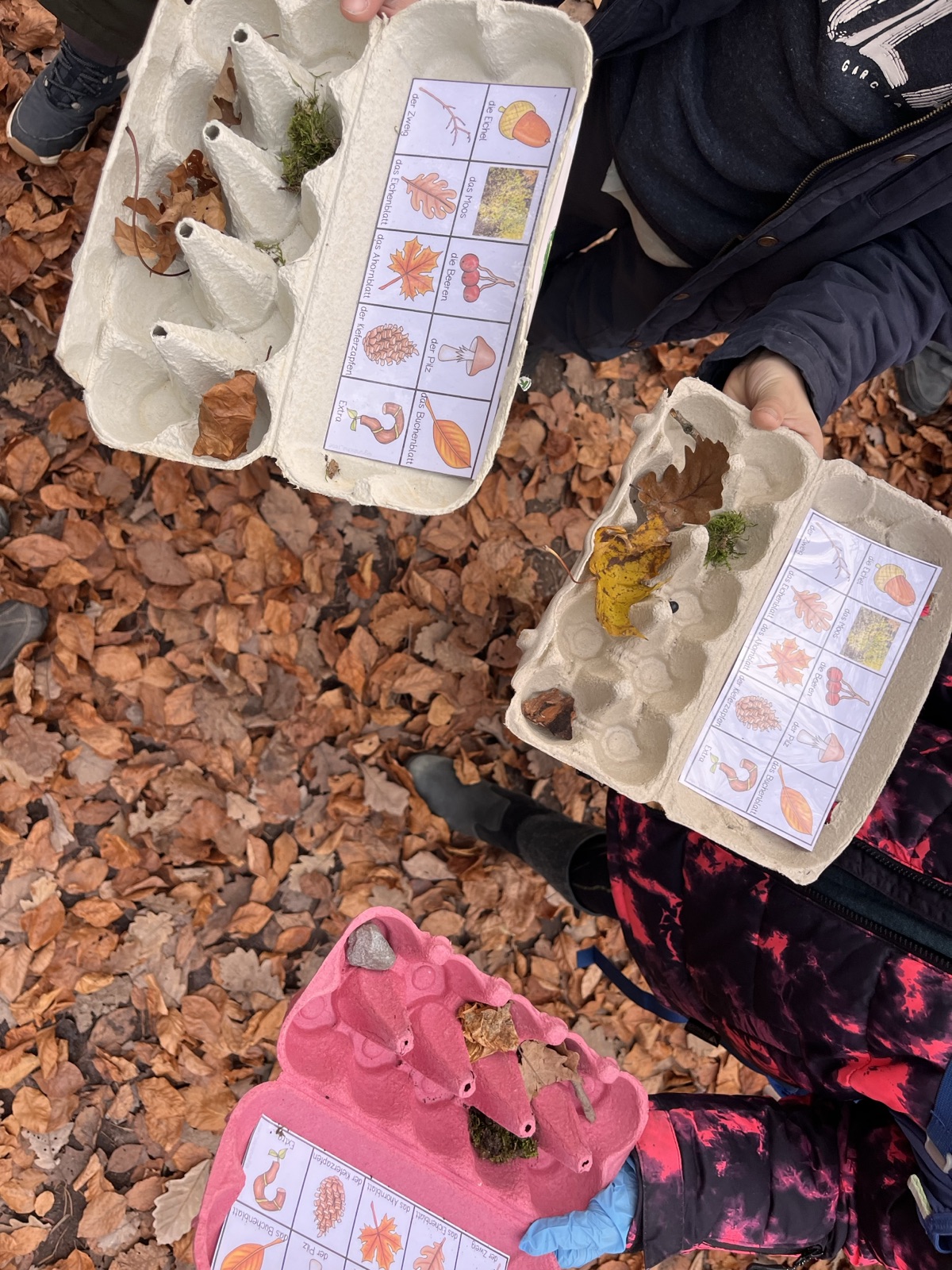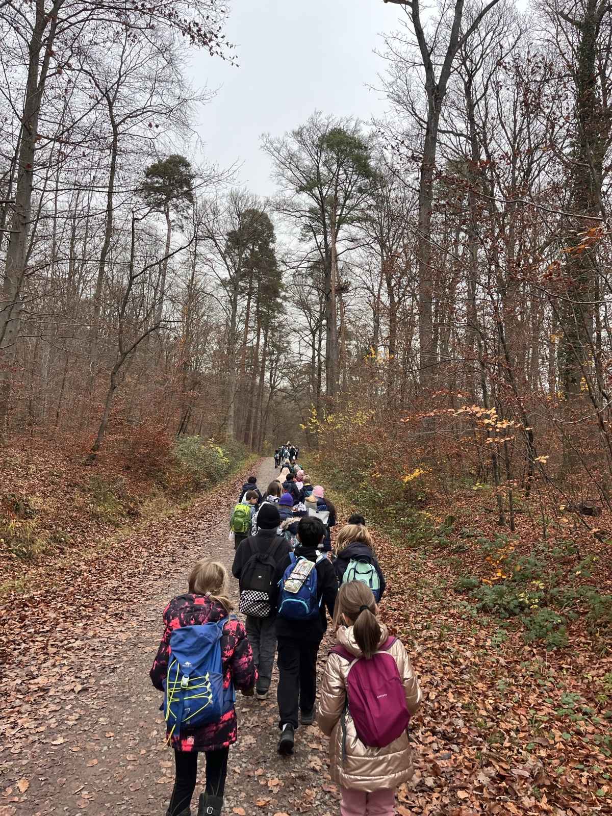 Am Freitag, 14.11.2025 waren die Klassen 3b und 3c gemeinsam im Kräherwald um „Waldschätze“ zu sammeln. Auf der Wanderung konnten viele Dinge entdeckt werden. Manche Blätter und Früchte konnten später mit Hilfe der „kleinen Waldfibel“ genauer bestimmt werden.
